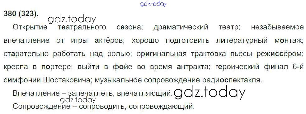 На страницах сайта gdz.today вы найдете учебный и вспомогательный материал, направленный на улучшения знаний школьной программы. ГДЗ - онлайн мир знаний Решение к упражнениям 380 Учебнику по Русскому языку для 8 класса Бархударов, Крючков Просвещение 2018