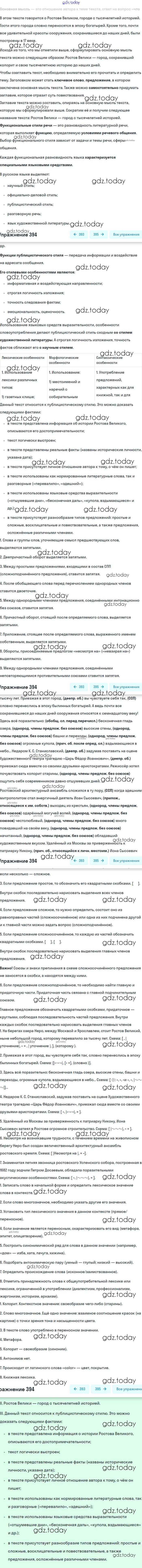 На страницах сайта gdz.today вы найдете учебный и вспомогательный материал, направленный на улучшения знаний школьной программы. ГДЗ - онлайн мир знаний Упражнения 394 Учебнику по Русскому языку для 8 класса Бархударов, Крючков Просвещение 2018