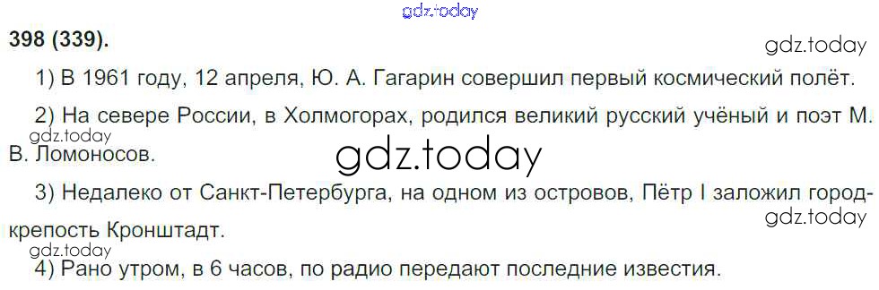На страницах сайта gdz.today вы найдете учебный и вспомогательный материал, направленный на улучшения знаний школьной программы. ГДЗ - онлайн мир знаний Решение к упражнениям 398 Учебнику по Русскому языку для 8 класса Бархударов, Крючков Просвещение 2018