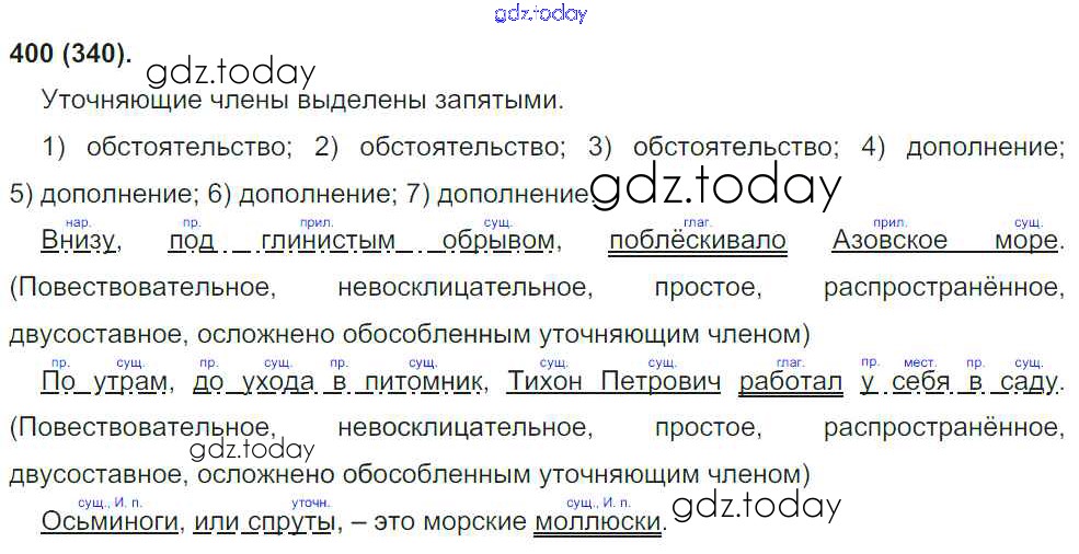 На страницах сайта gdz.today вы найдете учебный и вспомогательный материал, направленный на улучшения знаний школьной программы. ГДЗ - онлайн мир знаний Решение к упражнениям 400 Учебнику по Русскому языку для 8 класса Бархударов, Крючков Просвещение 2018