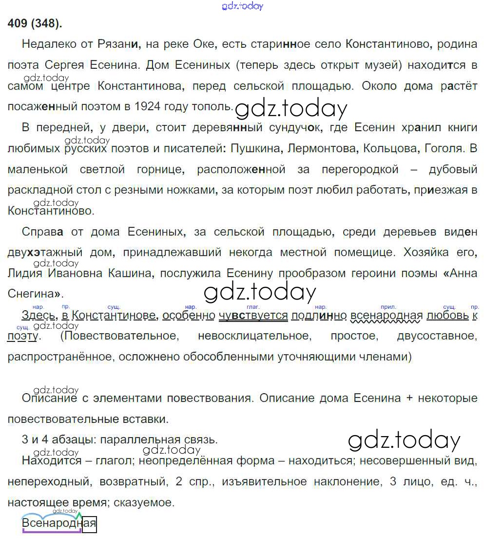 На страницах сайта gdz.today вы найдете учебный и вспомогательный материал, направленный на улучшения знаний школьной программы. ГДЗ - онлайн мир знаний Решение к упражнениям 409 Учебнику по Русскому языку для 8 класса Бархударов, Крючков Просвещение 2018