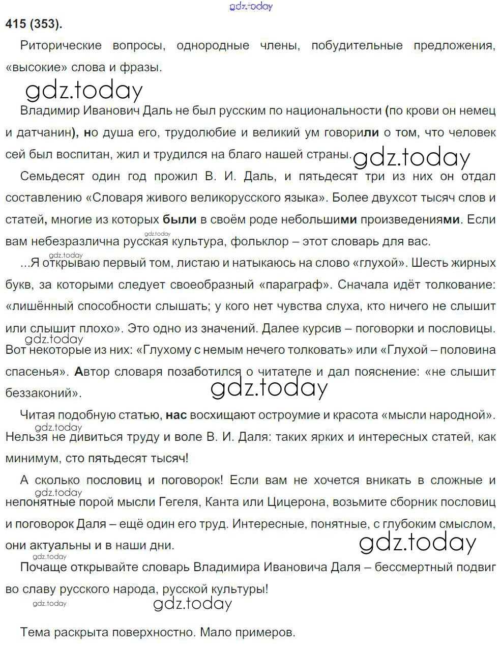 На страницах сайта gdz.today вы найдете учебный и вспомогательный материал, направленный на улучшения знаний школьной программы. ГДЗ - онлайн мир знаний Решение к упражнениям 415 Учебнику по Русскому языку для 8 класса Бархударов, Крючков Просвещение 2018