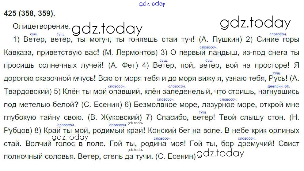 Ответы к Решение к упражнениям 425 Учебнику по Русскому языку для 8 класса Бархударов, Крючков Просвещение 2018