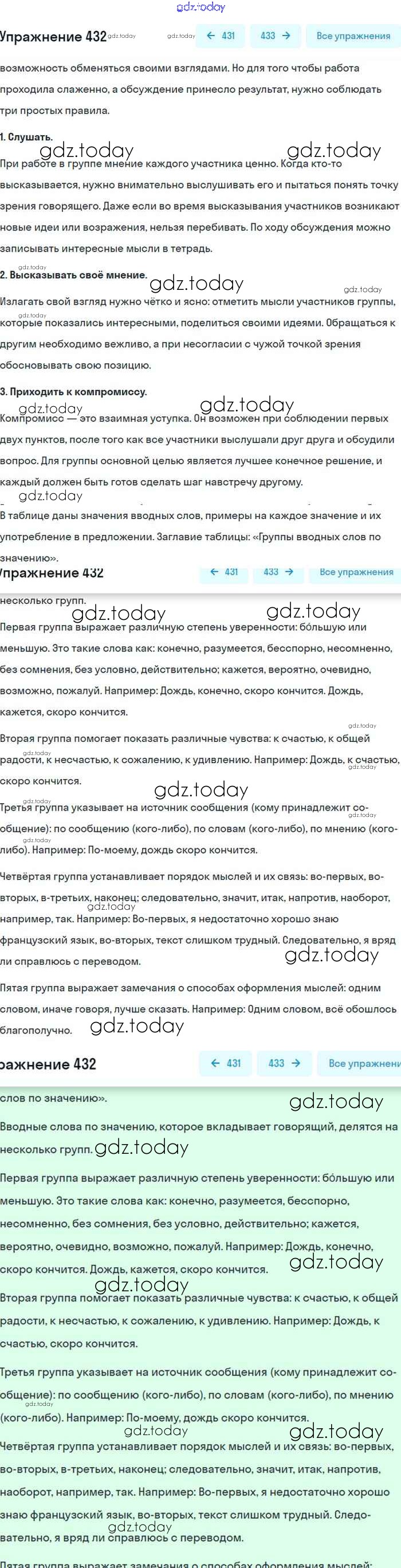 На страницах сайта gdz.today вы найдете учебный и вспомогательный материал, направленный на улучшения знаний школьной программы. ГДЗ - онлайн мир знаний Упражнения 432 Учебнику по Русскому языку для 8 класса Бархударов, Крючков Просвещение 2018