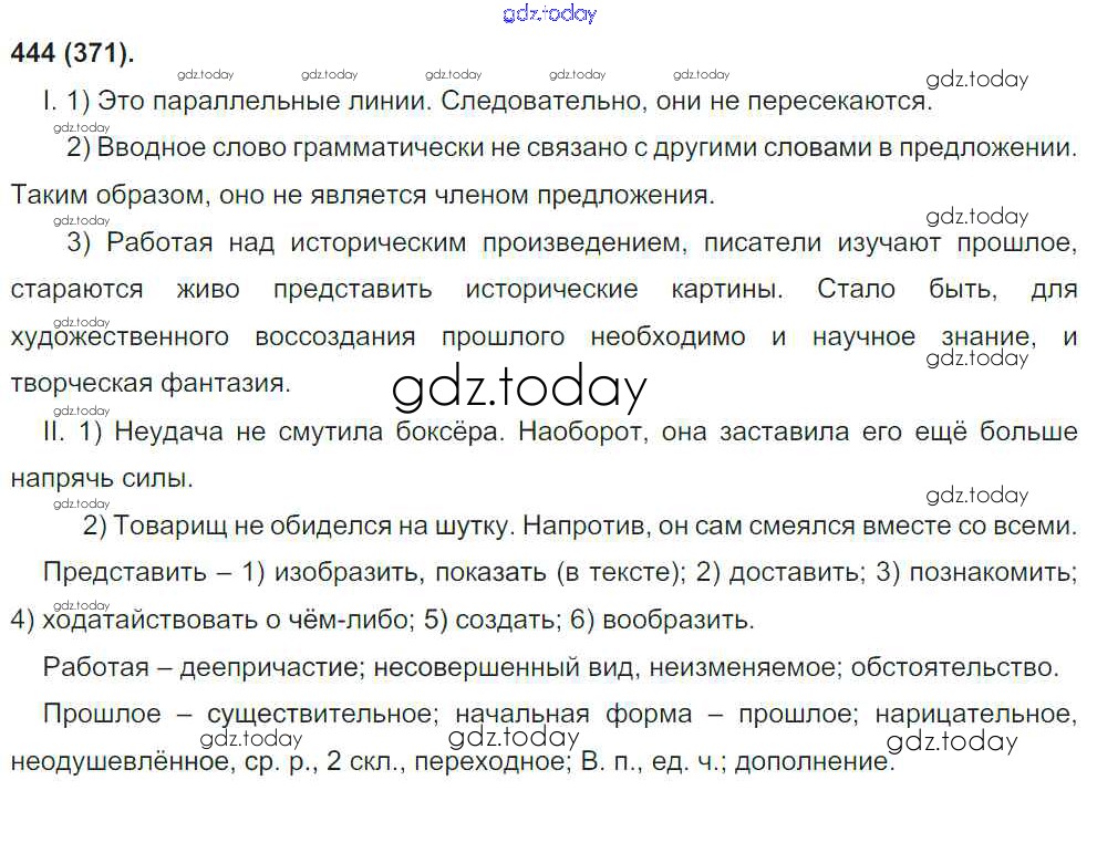 На страницах сайта gdz.today вы найдете учебный и вспомогательный материал, направленный на улучшения знаний школьной программы. ГДЗ - онлайн мир знаний Решение к упражнениям 444 Учебнику по Русскому языку для 8 класса Бархударов, Крючков Просвещение 2018