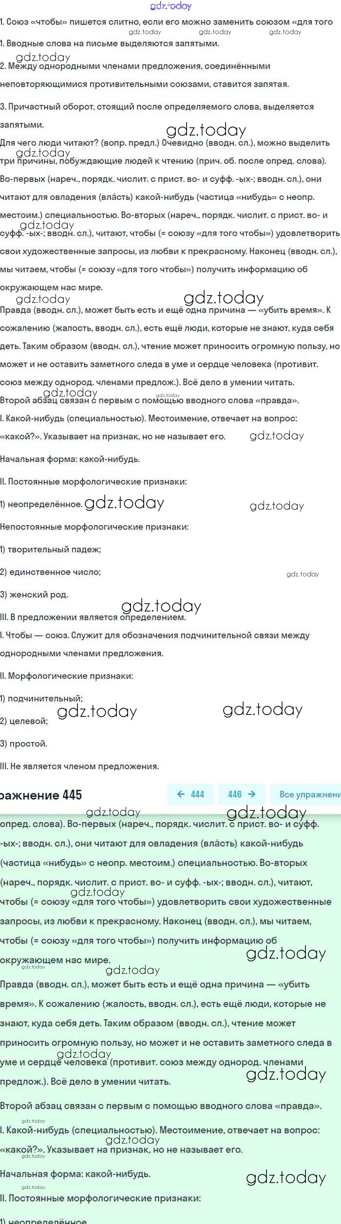 На страницах сайта gdz.today вы найдете учебный и вспомогательный материал, направленный на улучшения знаний школьной программы. ГДЗ - онлайн мир знаний Упражнения 445 Учебнику по Русскому языку для 8 класса Бархударов, Крючков Просвещение 2018