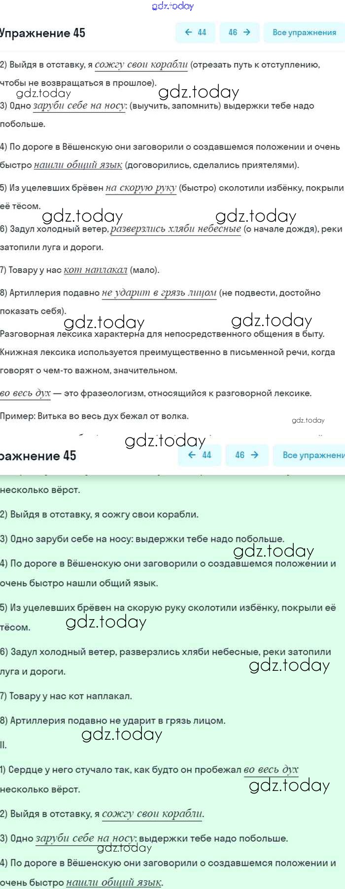 На страницах сайта gdz.today вы найдете учебный и вспомогательный материал, направленный на улучшения знаний школьной программы. ГДЗ - онлайн мир знаний Упражнения 45 Учебнику по Русскому языку для 8 класса Бархударов, Крючков Просвещение 2018