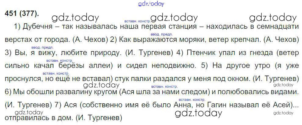 На страницах сайта gdz.today вы найдете учебный и вспомогательный материал, направленный на улучшения знаний школьной программы. ГДЗ - онлайн мир знаний Решение к упражнениям 451 Учебнику по Русскому языку для 8 класса Бархударов, Крючков Просвещение 2018