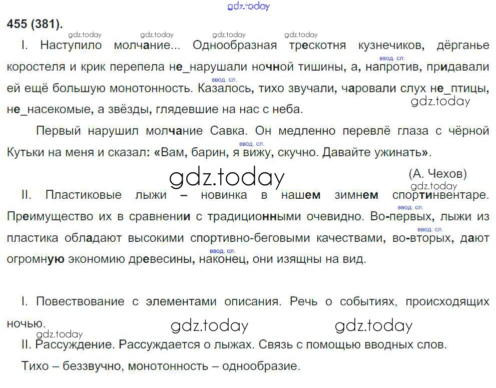 На страницах сайта gdz.today вы найдете учебный и вспомогательный материал, направленный на улучшения знаний школьной программы. ГДЗ - онлайн мир знаний Решение к упражнениям 455 Учебнику по Русскому языку для 8 класса Бархударов, Крючков Просвещение 2018