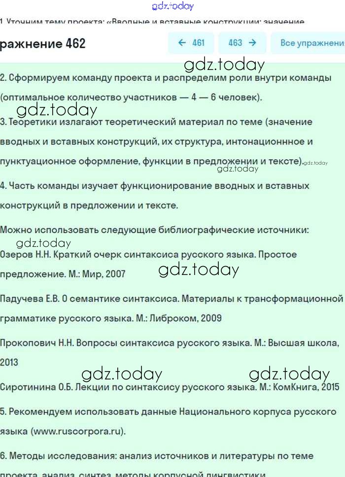 На страницах сайта gdz.today вы найдете учебный и вспомогательный материал, направленный на улучшения знаний школьной программы. ГДЗ - онлайн мир знаний Упражнения 462 Учебнику по Русскому языку для 8 класса Бархударов, Крючков Просвещение 2018