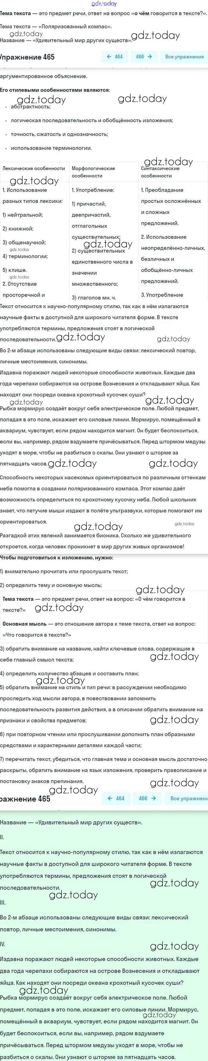 На страницах сайта gdz.today вы найдете учебный и вспомогательный материал, направленный на улучшения знаний школьной программы. ГДЗ - онлайн мир знаний Упражнения 465 Учебнику по Русскому языку для 8 класса Бархударов, Крючков Просвещение 2018