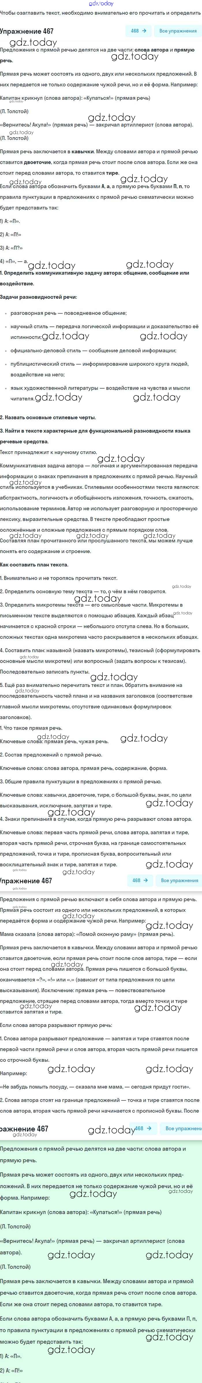 На страницах сайта gdz.today вы найдете учебный и вспомогательный материал, направленный на улучшения знаний школьной программы. ГДЗ - онлайн мир знаний Упражнения 467 Учебнику по Русскому языку для 8 класса Бархударов, Крючков Просвещение 2018