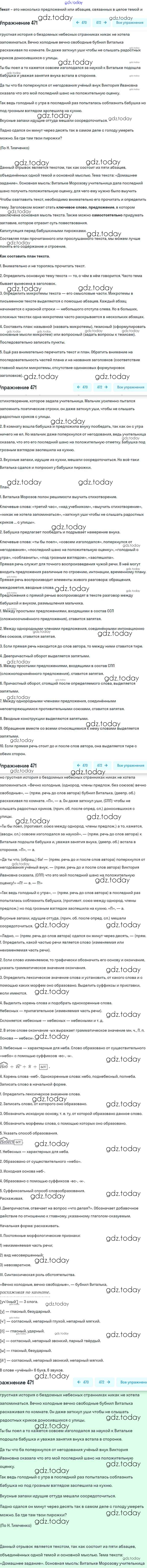 На страницах сайта gdz.today вы найдете учебный и вспомогательный материал, направленный на улучшения знаний школьной программы. ГДЗ - онлайн мир знаний Упражнения 471 Учебнику по Русскому языку для 8 класса Бархударов, Крючков Просвещение 2018