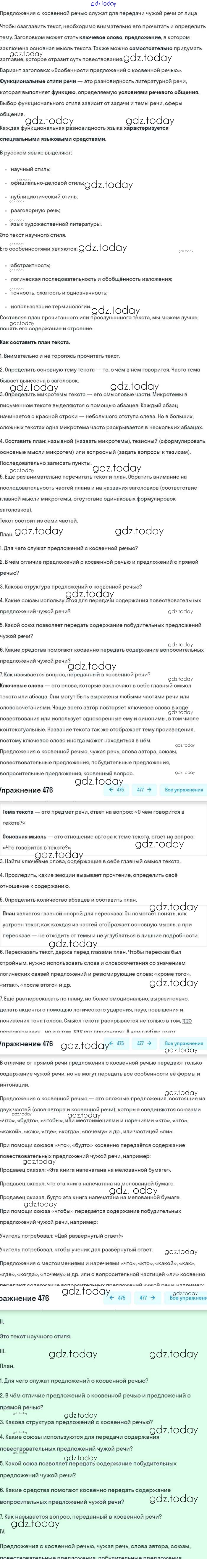 На страницах сайта gdz.today вы найдете учебный и вспомогательный материал, направленный на улучшения знаний школьной программы. ГДЗ - онлайн мир знаний Упражнения 476 Учебнику по Русскому языку для 8 класса Бархударов, Крючков Просвещение 2018