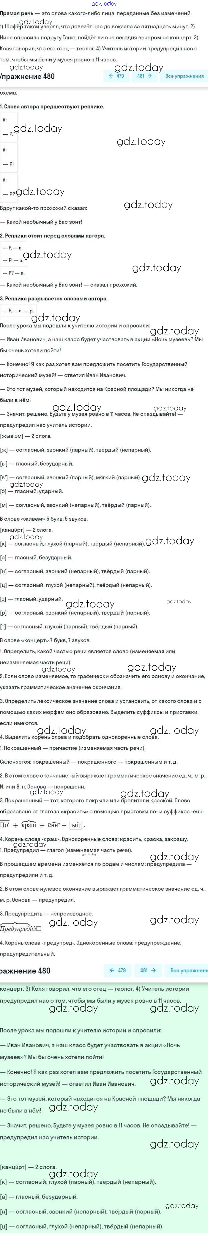 На страницах сайта gdz.today вы найдете учебный и вспомогательный материал, направленный на улучшения знаний школьной программы. ГДЗ - онлайн мир знаний Упражнения 480 Учебнику по Русскому языку для 8 класса Бархударов, Крючков Просвещение 2018