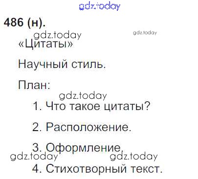 Ответы к Решение к упражнениям 486 Учебнику по Русскому языку для 8 класса Бархударов, Крючков Просвещение 2018