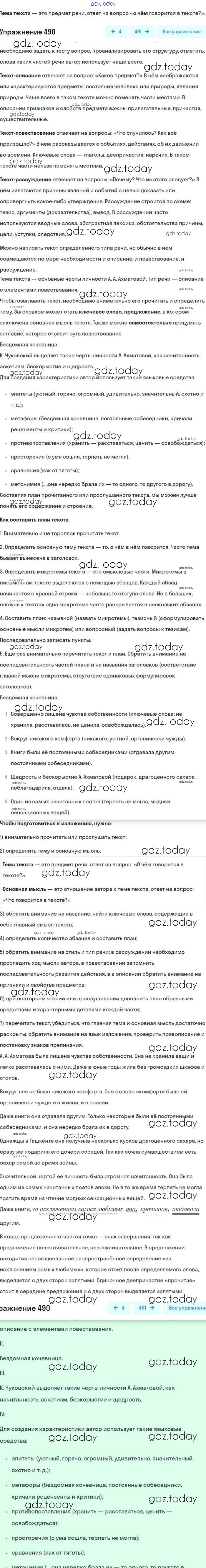 На страницах сайта gdz.today вы найдете учебный и вспомогательный материал, направленный на улучшения знаний школьной программы. ГДЗ - онлайн мир знаний Упражнения 490 Учебнику по Русскому языку для 8 класса Бархударов, Крючков Просвещение 2018