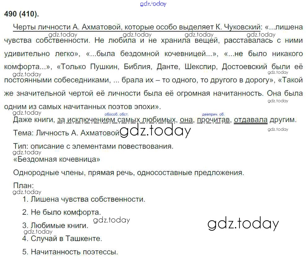 На страницах сайта gdz.today вы найдете учебный и вспомогательный материал, направленный на улучшения знаний школьной программы. ГДЗ - онлайн мир знаний Решение к упражнениям 490 Учебнику по Русскому языку для 8 класса Бархударов, Крючков Просвещение 2018