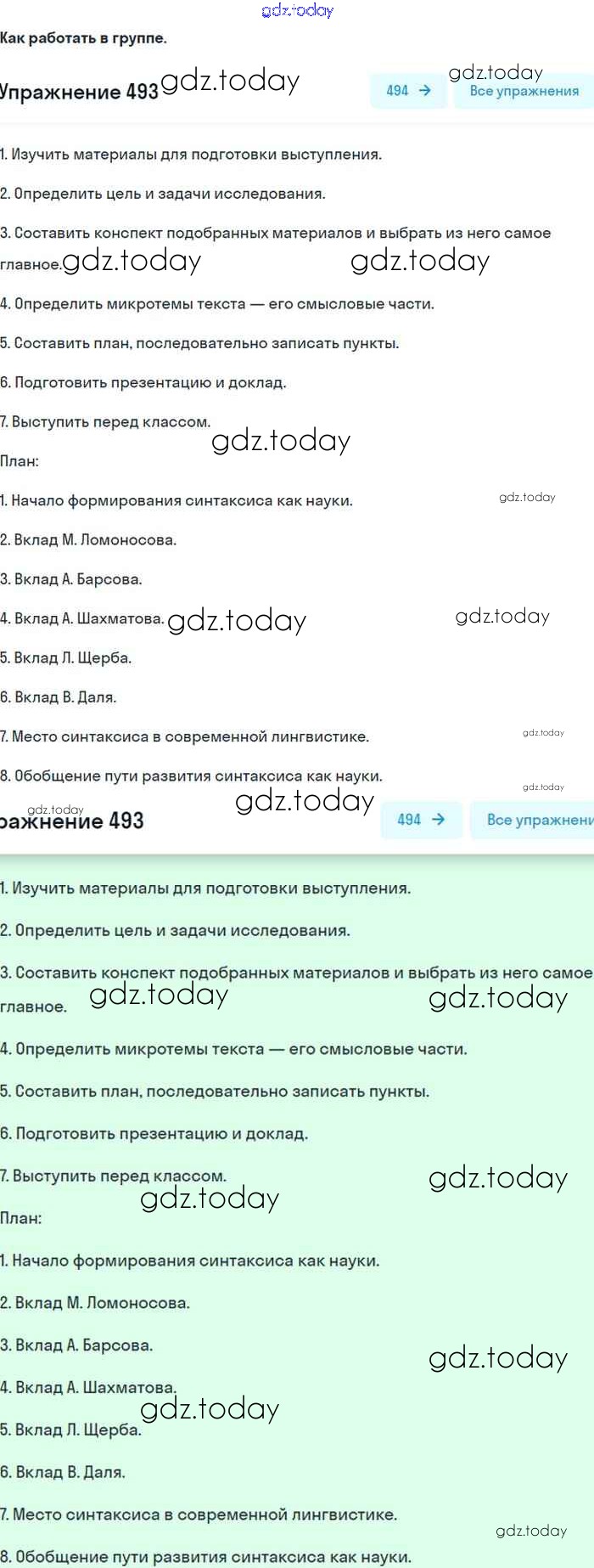 На страницах сайта gdz.today вы найдете учебный и вспомогательный материал, направленный на улучшения знаний школьной программы. ГДЗ - онлайн мир знаний Упражнения 493 Учебнику по Русскому языку для 8 класса Бархударов, Крючков Просвещение 2018