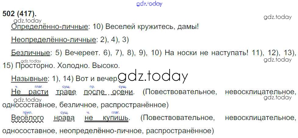 На страницах сайта gdz.today вы найдете учебный и вспомогательный материал, направленный на улучшения знаний школьной программы. ГДЗ - онлайн мир знаний Решение к упражнениям 502 Учебнику по Русскому языку для 8 класса Бархударов, Крючков Просвещение 2018