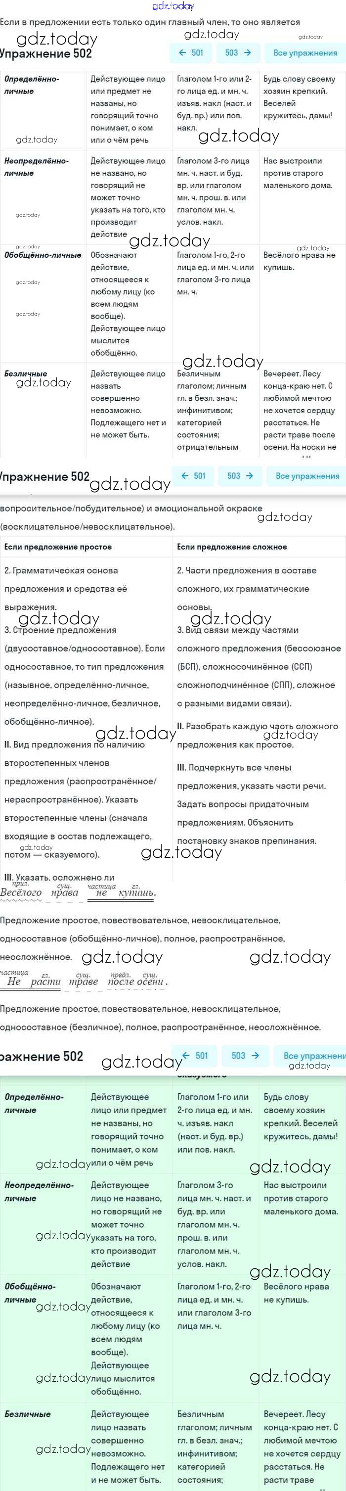 На страницах сайта gdz.today вы найдете учебный и вспомогательный материал, направленный на улучшения знаний школьной программы. ГДЗ - онлайн мир знаний Упражнения 502 Учебнику по Русскому языку для 8 класса Бархударов, Крючков Просвещение 2018