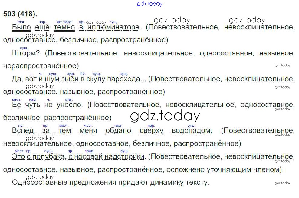 На страницах сайта gdz.today вы найдете учебный и вспомогательный материал, направленный на улучшения знаний школьной программы. ГДЗ - онлайн мир знаний Решение к упражнениям 503 Учебнику по Русскому языку для 8 класса Бархударов, Крючков Просвещение 2018
