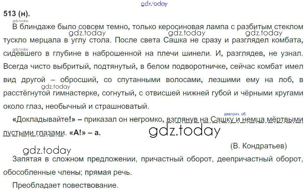 На страницах сайта gdz.today вы найдете учебный и вспомогательный материал, направленный на улучшения знаний школьной программы. ГДЗ - онлайн мир знаний Решение к упражнениям 513 Учебнику по Русскому языку для 8 класса Бархударов, Крючков Просвещение 2018