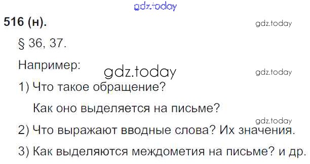 На страницах сайта gdz.today вы найдете учебный и вспомогательный материал, направленный на улучшения знаний школьной программы. ГДЗ - онлайн мир знаний Решение к упражнениям 516 Учебнику по Русскому языку для 8 класса Бархударов, Крючков Просвещение 2018