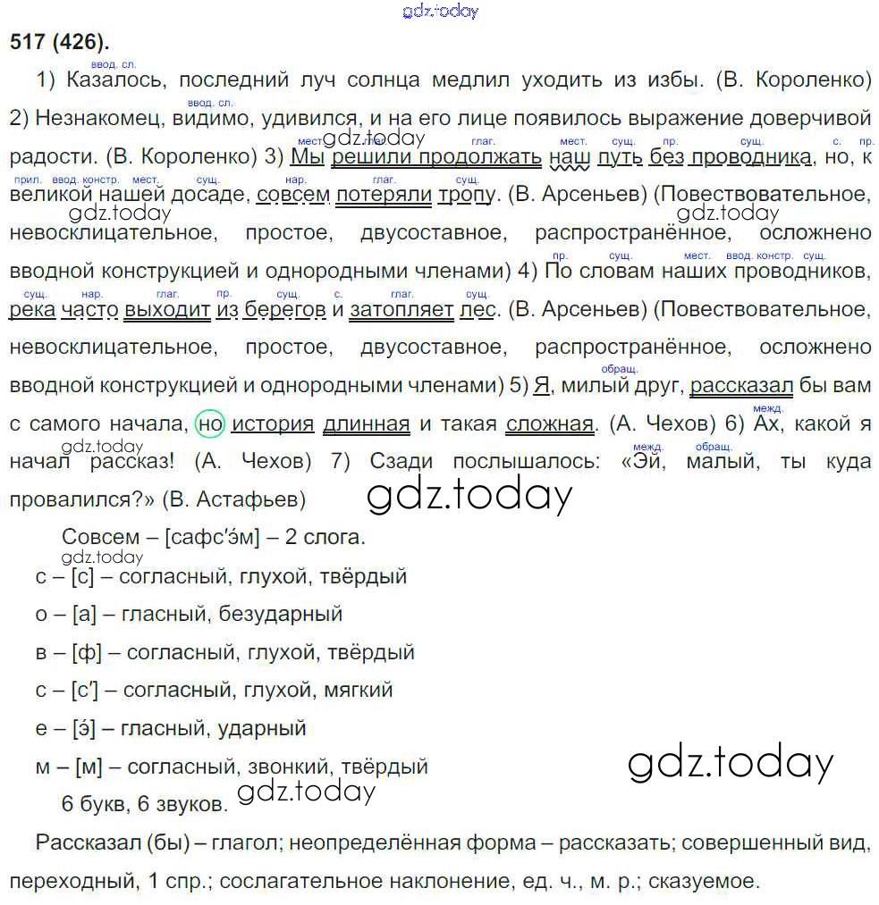 На страницах сайта gdz.today вы найдете учебный и вспомогательный материал, направленный на улучшения знаний школьной программы. ГДЗ - онлайн мир знаний Решение к упражнениям 517 Учебнику по Русскому языку для 8 класса Бархударов, Крючков Просвещение 2018