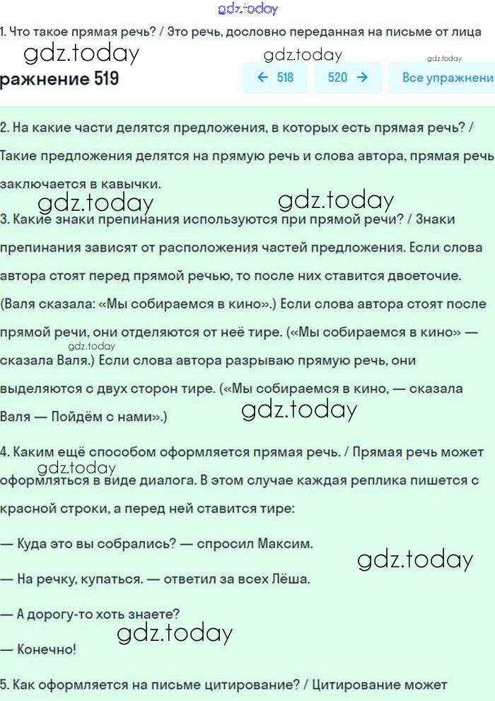 На страницах сайта gdz.today вы найдете учебный и вспомогательный материал, направленный на улучшения знаний школьной программы. ГДЗ - онлайн мир знаний Упражнения 519 Учебнику по Русскому языку для 8 класса Бархударов, Крючков Просвещение 2018