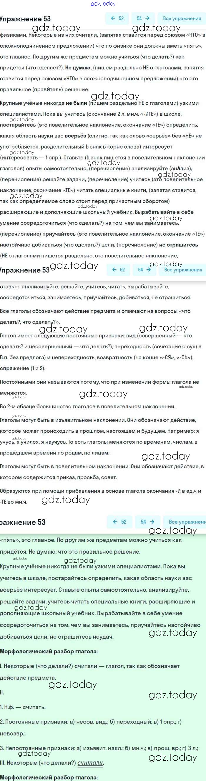 На страницах сайта gdz.today вы найдете учебный и вспомогательный материал, направленный на улучшения знаний школьной программы. ГДЗ - онлайн мир знаний Упражнения 53 Учебнику по Русскому языку для 8 класса Бархударов, Крючков Просвещение 2018
