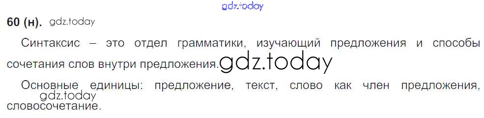 На страницах сайта gdz.today вы найдете учебный и вспомогательный материал, направленный на улучшения знаний школьной программы. ГДЗ - онлайн мир знаний Решение к упражнениям 60 Учебнику по Русскому языку для 8 класса Бархударов, Крючков Просвещение 2018