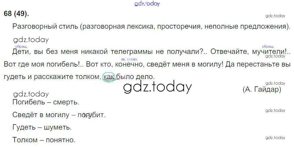 На страницах сайта gdz.today вы найдете учебный и вспомогательный материал, направленный на улучшения знаний школьной программы. ГДЗ - онлайн мир знаний Решение к упражнениям 68 Учебнику по Русскому языку для 8 класса Бархударов, Крючков Просвещение 2018