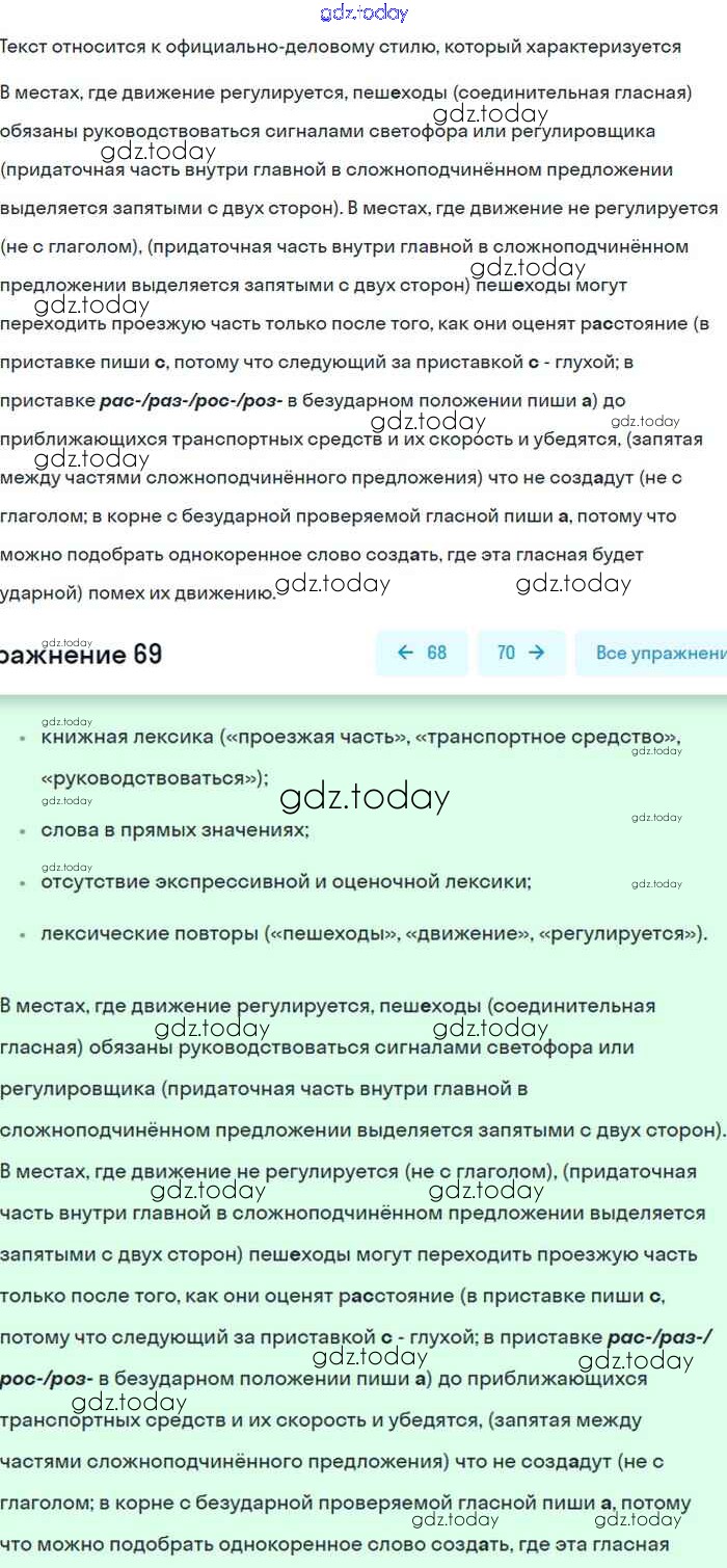 На страницах сайта gdz.today вы найдете учебный и вспомогательный материал, направленный на улучшения знаний школьной программы. ГДЗ - онлайн мир знаний Упражнения 69 Учебнику по Русскому языку для 8 класса Бархударов, Крючков Просвещение 2018