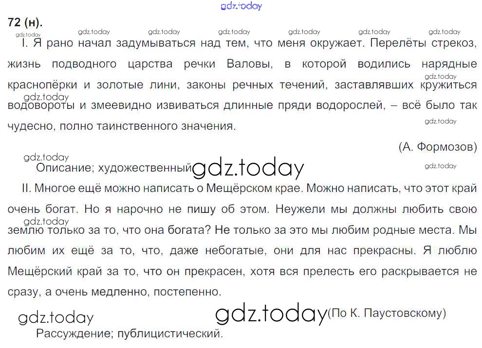 На страницах сайта gdz.today вы найдете учебный и вспомогательный материал, направленный на улучшения знаний школьной программы. ГДЗ - онлайн мир знаний Решение к упражнениям 72 Учебнику по Русскому языку для 8 класса Бархударов, Крючков Просвещение 2018