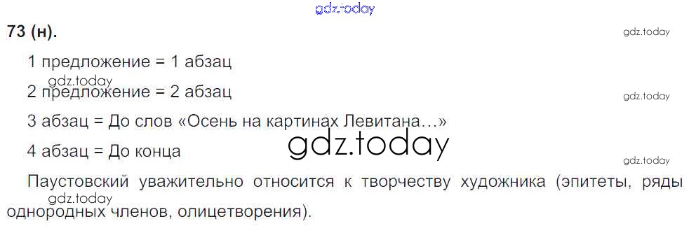 На страницах сайта gdz.today вы найдете учебный и вспомогательный материал, направленный на улучшения знаний школьной программы. ГДЗ - онлайн мир знаний Решение к упражнениям 73 Учебнику по Русскому языку для 8 класса Бархударов, Крючков Просвещение 2018