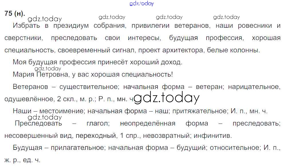 На страницах сайта gdz.today вы найдете учебный и вспомогательный материал, направленный на улучшения знаний школьной программы. ГДЗ - онлайн мир знаний Решение к упражнениям 75 Учебнику по Русскому языку для 8 класса Бархударов, Крючков Просвещение 2018