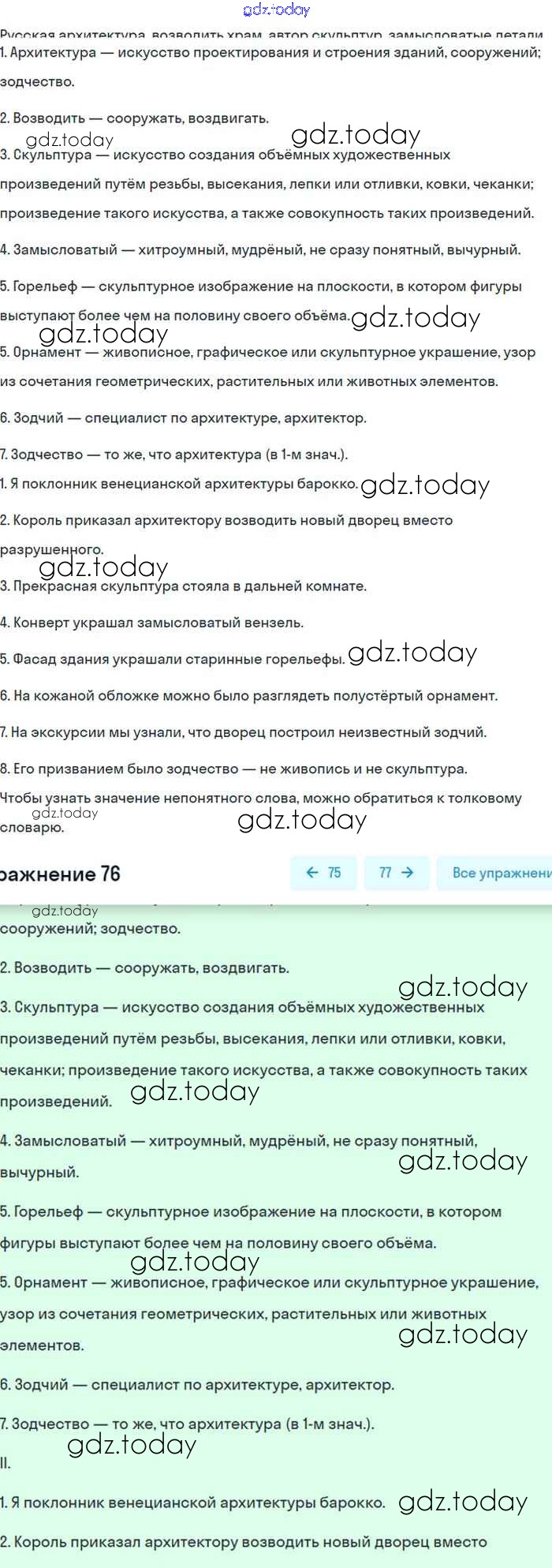 На страницах сайта gdz.today вы найдете учебный и вспомогательный материал, направленный на улучшения знаний школьной программы. ГДЗ - онлайн мир знаний Упражнения 76 Учебнику по Русскому языку для 8 класса Бархударов, Крючков Просвещение 2018