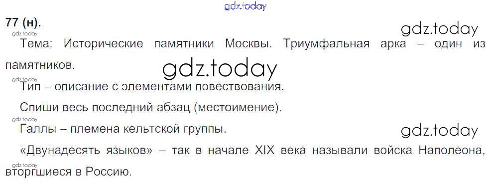 На страницах сайта gdz.today вы найдете учебный и вспомогательный материал, направленный на улучшения знаний школьной программы. ГДЗ - онлайн мир знаний Решение к упражнениям 77 Учебнику по Русскому языку для 8 класса Бархударов, Крючков Просвещение 2018