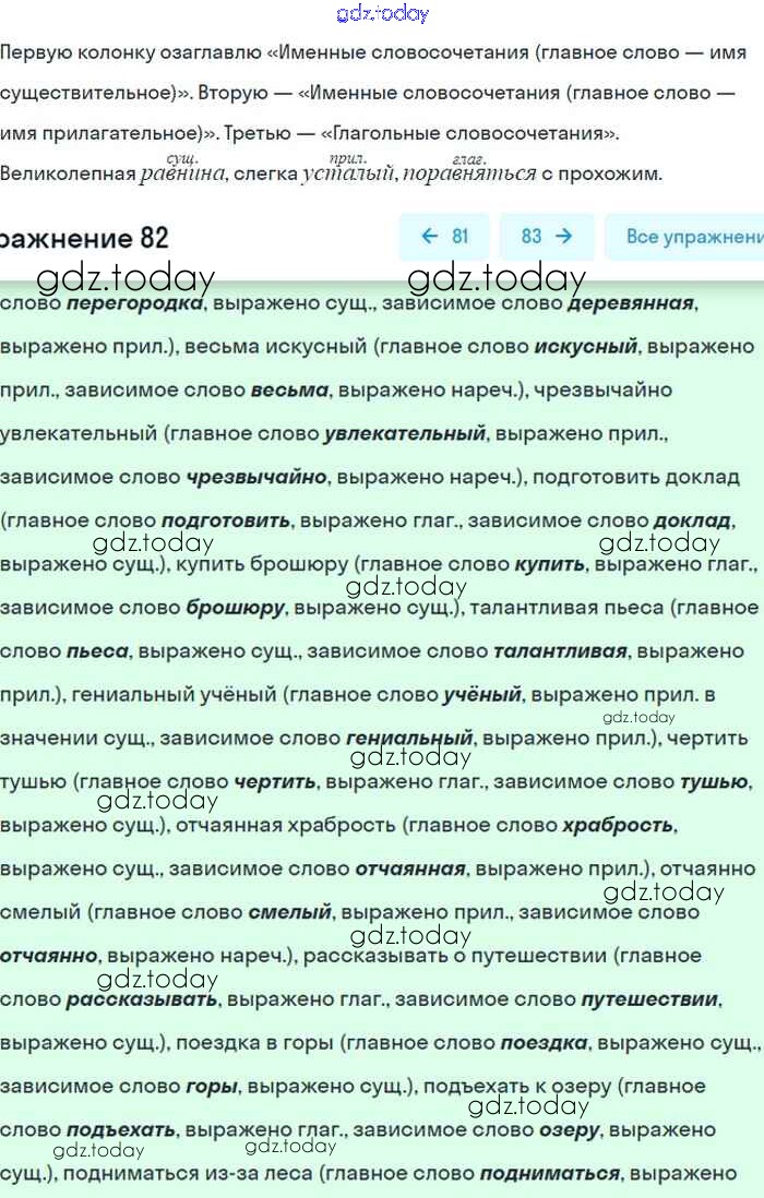 На страницах сайта gdz.today вы найдете учебный и вспомогательный материал, направленный на улучшения знаний школьной программы. ГДЗ - онлайн мир знаний Упражнения 82 Учебнику по Русскому языку для 8 класса Бархударов, Крючков Просвещение 2018