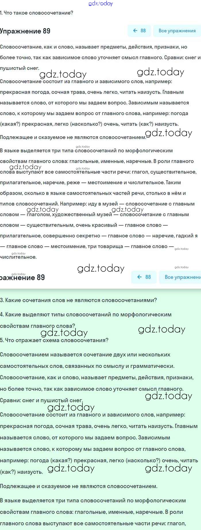 На страницах сайта gdz.today вы найдете учебный и вспомогательный материал, направленный на улучшения знаний школьной программы. ГДЗ - онлайн мир знаний Упражнения 89 Учебнику по Русскому языку для 8 класса Бархударов, Крючков Просвещение 2018