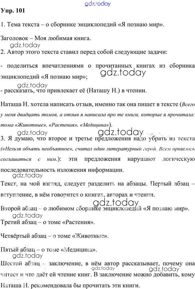 На страницах сайта gdz.today вы найдете учебный и вспомогательный материал, направленный на улучшения знаний школьной программы. ГДЗ - онлайн мир знаний Упражнения Часть 1 (решение) 101 Учебнику по Русскому языку для 8 класса Быстрова, Кибирева Русское слово Инновационная школа 2019