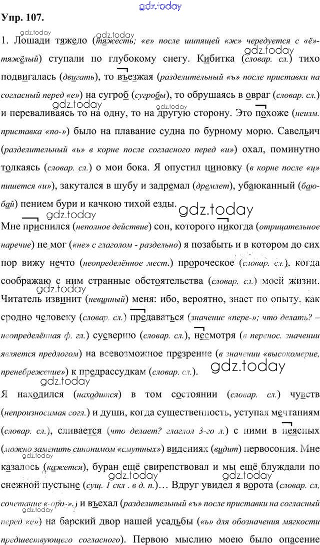 На страницах сайта gdz.today вы найдете учебный и вспомогательный материал, направленный на улучшения знаний школьной программы. ГДЗ - онлайн мир знаний Упражнения Часть 1 (решение) 107 Учебнику по Русскому языку для 8 класса Быстрова, Кибирева Русское слово Инновационная школа 2019