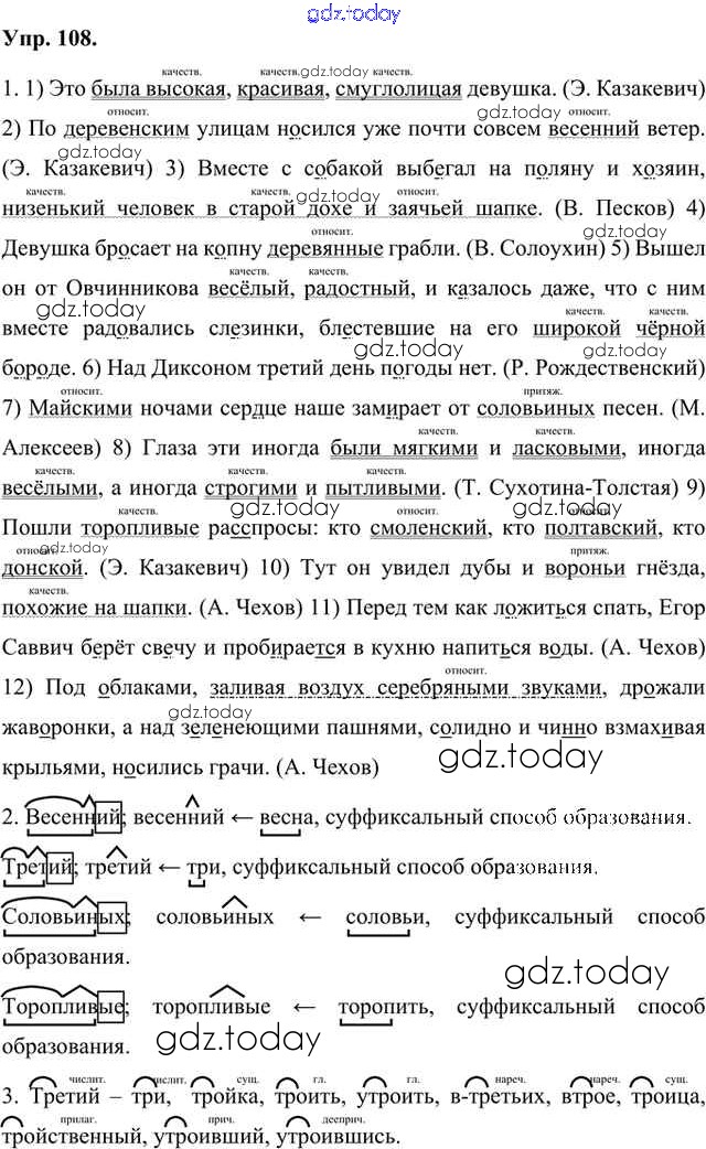 На страницах сайта gdz.today вы найдете учебный и вспомогательный материал, направленный на улучшения знаний школьной программы. ГДЗ - онлайн мир знаний Упражнения Часть 1 (решение) 108 Учебнику по Русскому языку для 8 класса Быстрова, Кибирева Русское слово Инновационная школа 2019