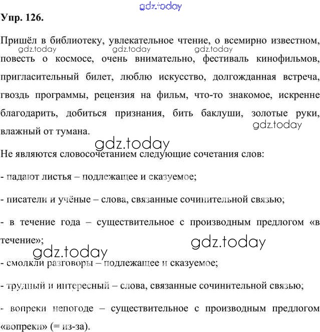 На страницах сайта gdz.today вы найдете учебный и вспомогательный материал, направленный на улучшения знаний школьной программы. ГДЗ - онлайн мир знаний Упражнения Часть 1 (решение) 126 Учебнику по Русскому языку для 8 класса Быстрова, Кибирева Русское слово Инновационная школа 2019