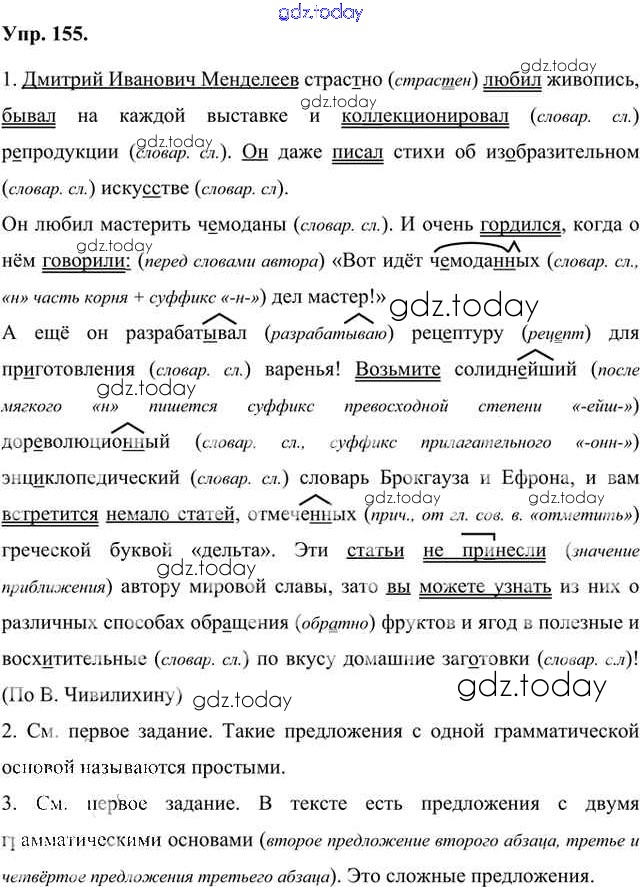 На страницах сайта gdz.today вы найдете учебный и вспомогательный материал, направленный на улучшения знаний школьной программы. ГДЗ - онлайн мир знаний Упражнения Часть 1 (решение) 155 Учебнику по Русскому языку для 8 класса Быстрова, Кибирева Русское слово Инновационная школа 2019
