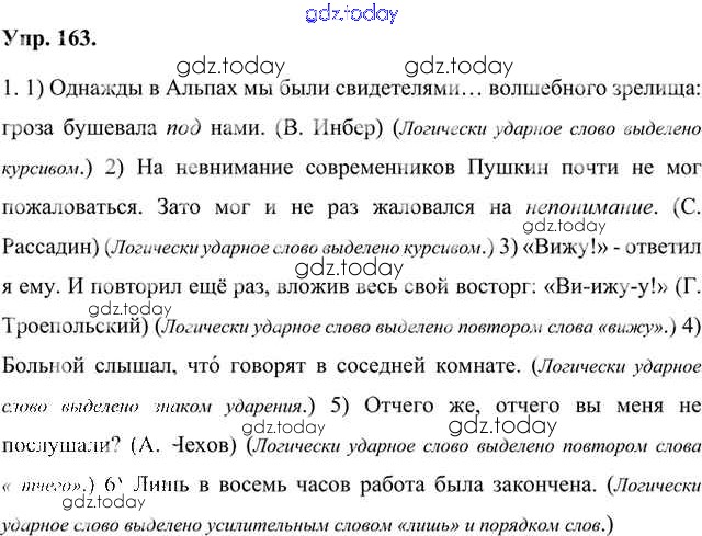 На страницах сайта gdz.today вы найдете учебный и вспомогательный материал, направленный на улучшения знаний школьной программы. ГДЗ - онлайн мир знаний Упражнения Часть 1 (решение) 163 Учебнику по Русскому языку для 8 класса Быстрова, Кибирева Русское слово Инновационная школа 2019
