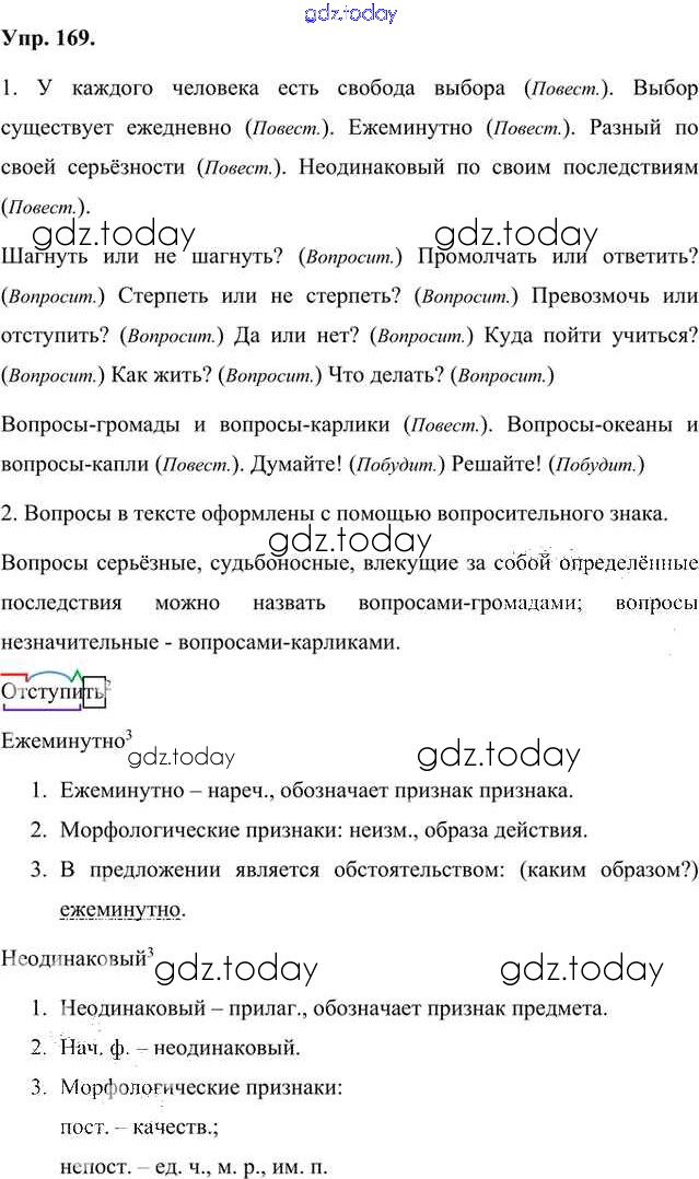 На страницах сайта gdz.today вы найдете учебный и вспомогательный материал, направленный на улучшения знаний школьной программы. ГДЗ - онлайн мир знаний Упражнения Часть 1 (решение) 169 Учебнику по Русскому языку для 8 класса Быстрова, Кибирева Русское слово Инновационная школа 2019