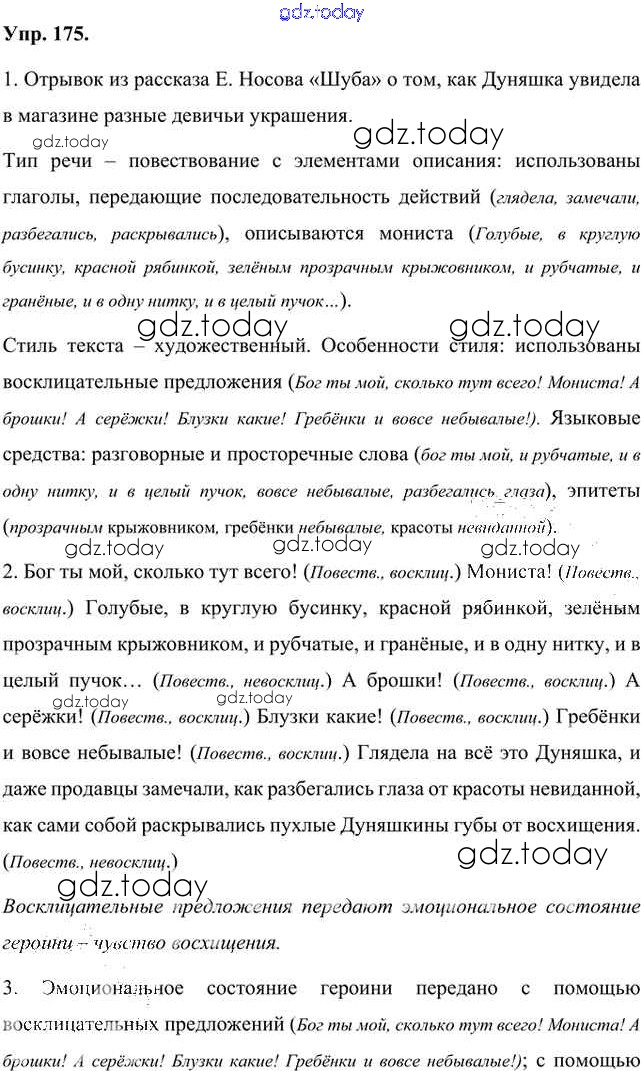 На страницах сайта gdz.today вы найдете учебный и вспомогательный материал, направленный на улучшения знаний школьной программы. ГДЗ - онлайн мир знаний Упражнения Часть 1 (решение) 175 Учебнику по Русскому языку для 8 класса Быстрова, Кибирева Русское слово Инновационная школа 2019