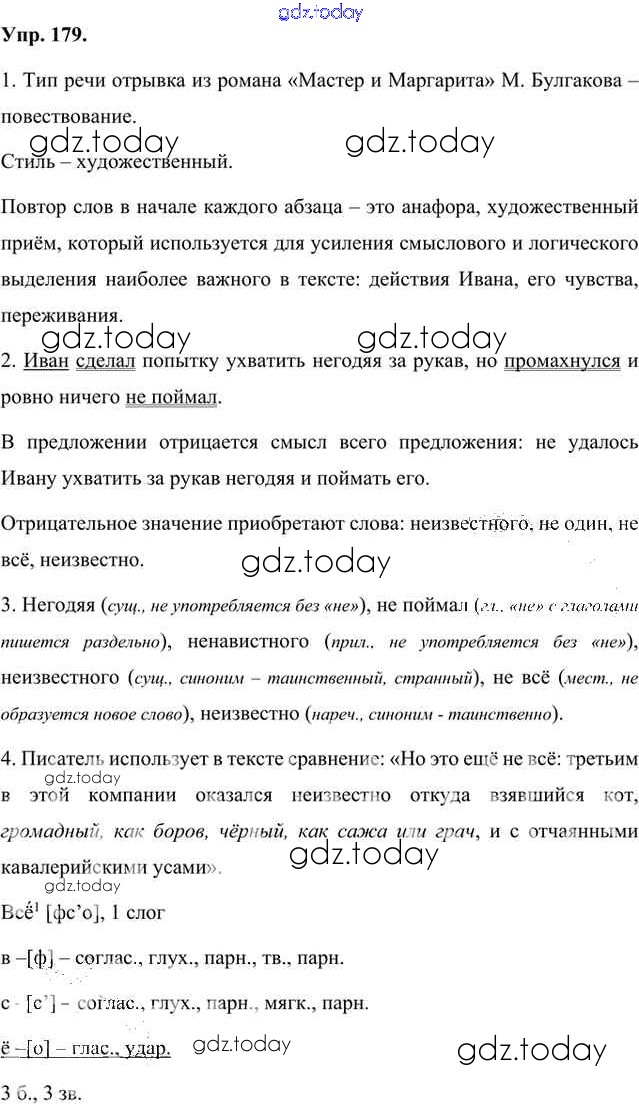 На страницах сайта gdz.today вы найдете учебный и вспомогательный материал, направленный на улучшения знаний школьной программы. ГДЗ - онлайн мир знаний Упражнения Часть 1 (решение) 179 Учебнику по Русскому языку для 8 класса Быстрова, Кибирева Русское слово Инновационная школа 2019